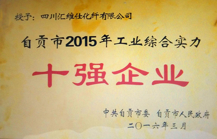 公司被评选为“自贡市2015年—2016年工业综合实力”十强企业